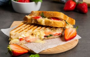 Grillet Levain sandwich med friske jordbær og brie